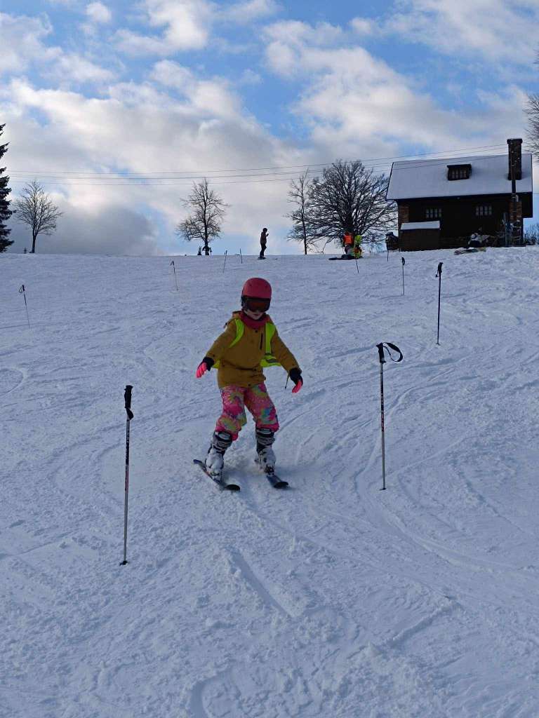 Dopoledne probíhají individuální lekce pro začátečníky. Pokud dítě zrovna nelyžuje, může využít dětskou herničku s hlídáním přímo pod svahem.