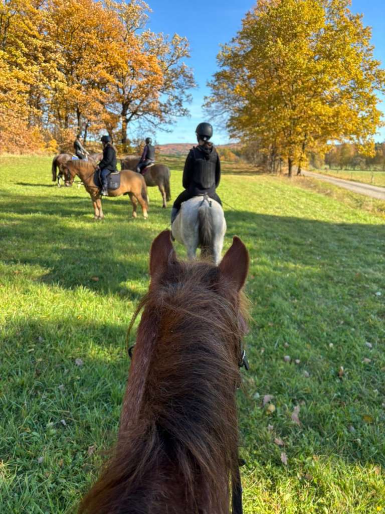 Každodenní jízda na koni formou výuku na jízdárně nebo vyjíždět do terénu. Dále se věnujeme péči o koně (čistění, sedlání, vodění koní z a do výběhu), pomoc ve stáji a všeho, co ke koním patří. Máme také připravený velikonoční program, hry v přírodě, společenské hry, atp.